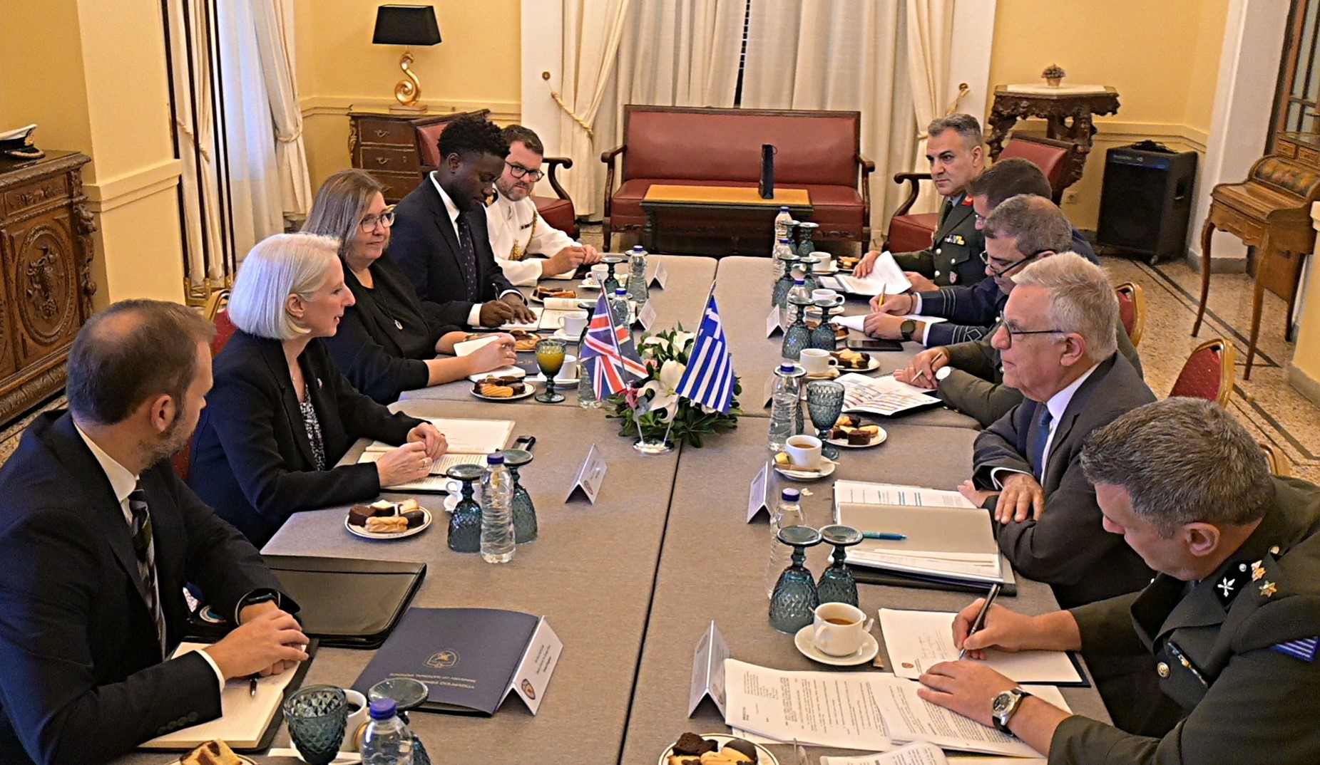 Ο Γενικός Διευθυντής της Γενικής Διεύθυνσης Πολιτικής Εθνικής Άμυνας και Διεθνών Σχέσεων (ΓΔΠΕΑΔΣ) του Υπουργείου Εθνικής Άμυνας, Πρέσβυς ε.τ. Μιχαήλ Σπινέλλης , στο πλαίσιο της αμυντικής διπλωματίας και ειδικότερα της περαιτέρω ενίσχυσης των διμερών σχέσεων μεταξύ της Ελλάδας και του Ηνωμένου Βασιλείου, πραγματοποίησε στις 29 Σεπτεμβρίου 2025, διμερείς διαβουλεύσεις με την κα Joanne Hamer, MBE, Διευθύντρια Ευρω-Ατλαντικής Ασφάλεια του Υπουργείου Άμυνας του ΗΒ.