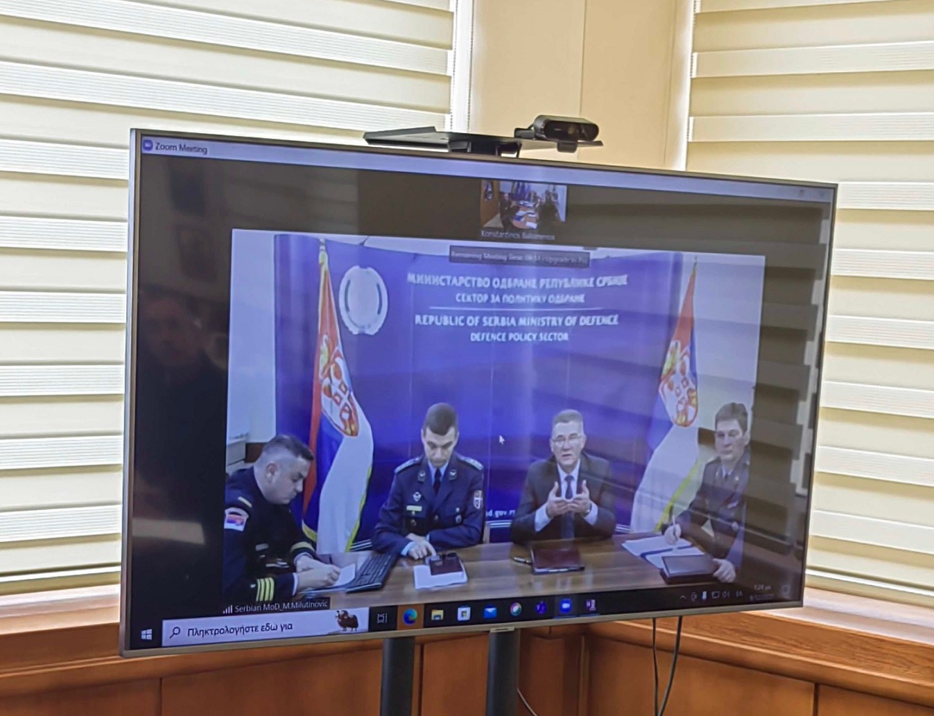 O Γενικός Διευθυντής της Γενικής Διεύθυνσης Πολιτικής Εθνικής Άμυνας και Διεθνών Σχέσεων (ΓΔΠΕΑΔΣ) του ΥΠΕΘΑ Δρ. Κωνσταντίνος Μπαλωμένος, στο πλαίσιο των διμερών αμυντικών σχέσεων μεταξύ Ελλάδας – Σερβίας, πραγματοποίησε την Παρασκευή 09 Δεκεμβρίου 2022, τηλεδιάσκεψη εργασίας με τον Αναπληρωτή Υπουργό Πολιτικής Άμυνας του Υπουργείου Άμυνας της Σερβίας κ. Bredrag Bandic.